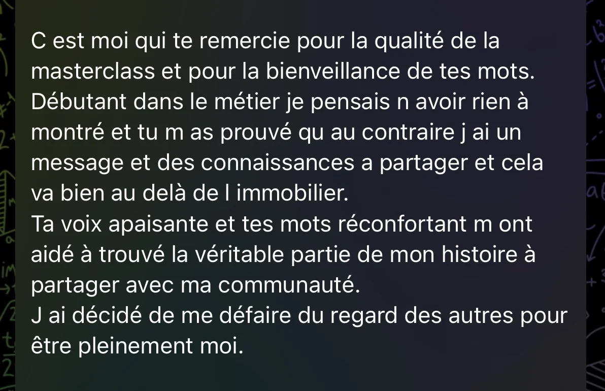 Tout a changé le jour où j’ai osé raconter mon histoire : mon business a décollé, ma confiance s’est décuplée et mon autorité s’est installée sans avoir 10K abonnés mais avec une réelle connexion avec mon audience et une légitimité dans mon expertise.